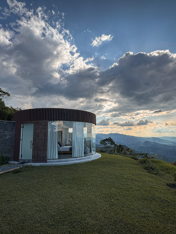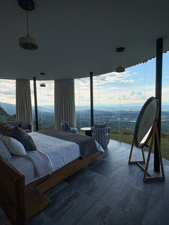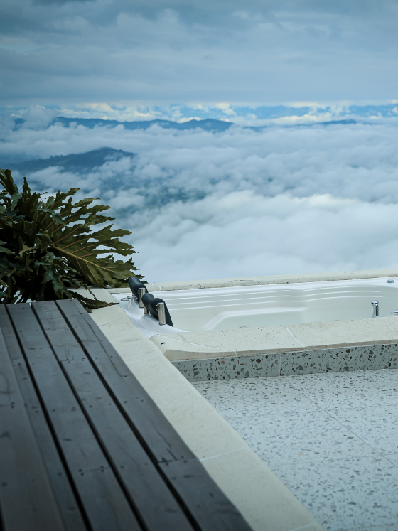La Master Suite Infinito Deluxe es el máximo exponente del lujo en La Cima Eco Hotel. Con más de 200 m², arquitectura circular de más de 3 metros de altura, mármol y acabados premium, ofrece un entorno exclusivo en plena montaña. Sus ventanales enmarcan un jacuzzi con vista infinita y un espejo de agua que crea una atmósfera sofisticada. Un lugar donde la elegancia de la ciudad se fusiona con la serenidad de la naturaleza del Eje Cafetero.